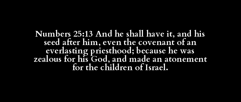 Numbers 25:13 And he shall have it, and his seed after him, even the covenant of an everlasting priesthood; because he was zealous for his God, and made an atonement for the children of Israel.