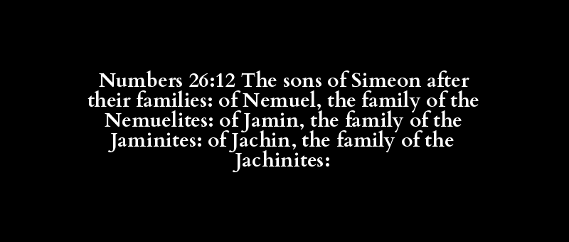Numbers 26:12 The sons of Simeon after their families: of Nemuel, the family of the Nemuelites: of Jamin, the family of the Jaminites: of Jachin, the family of the Jachinites: