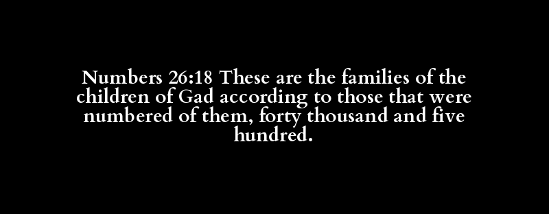 Numbers 26:18 These are the families of the children of Gad according to those that were numbered of them, forty thousand and five hundred.