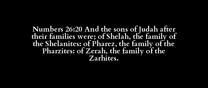 Numbers 26:20 And the sons of Judah after their families were; of Shelah, the family of the Shelanites: of Pharez, the family of the Pharzites: of Zerah, the family of the Zarhites.