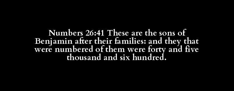 Numbers 26:41 These are the sons of Benjamin after their families: and they that were numbered of them were forty and five thousand and six hundred.