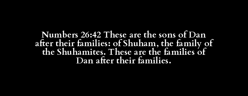 Numbers 26:42 These are the sons of Dan after their families: of Shuham, the family of the Shuhamites. These are the families of Dan after their families.