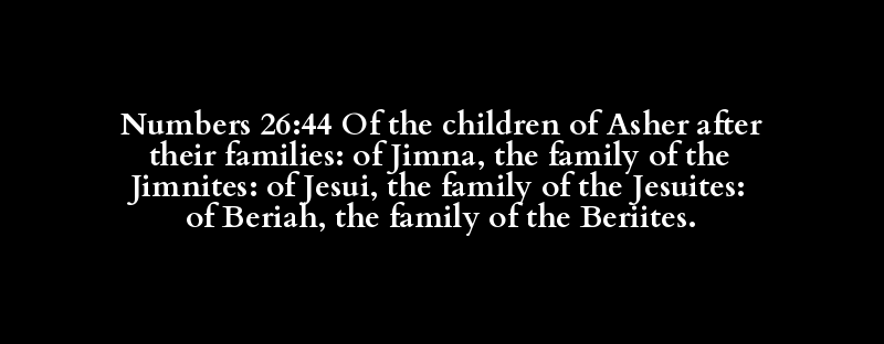 Numbers 26:44 Of the children of Asher after their families: of Jimna, the family of the Jimnites: of Jesui, the family of the Jesuites: of Beriah, the family of the Beriites.