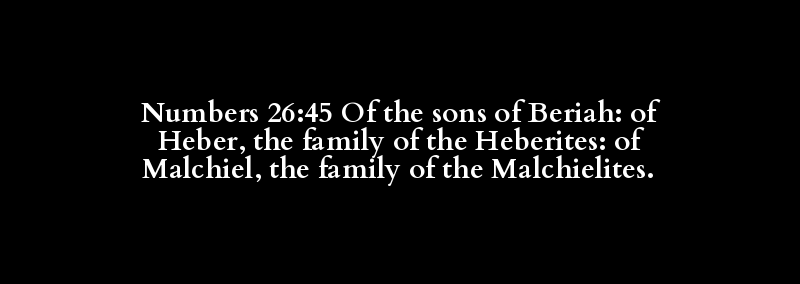 Numbers 26:45 Of the sons of Beriah: of Heber, the family of the Heberites: of Malchiel, the family of the Malchielites.