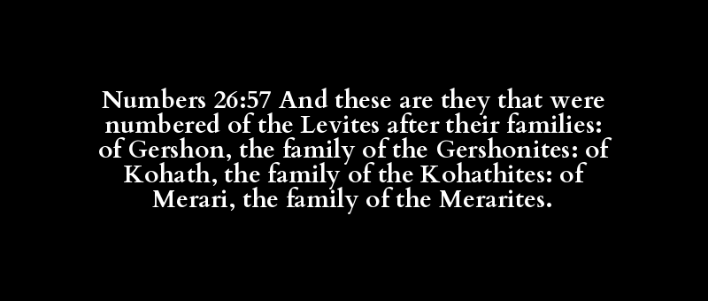 Numbers 26:57 And these are they that were numbered of the Levites after their families: of Gershon, the family of the Gershonites: of Kohath, the family of the Kohathites: of Merari, the family of the Merarites.