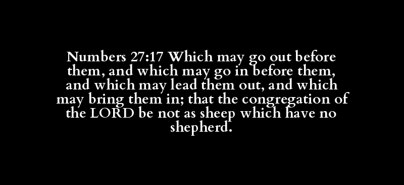 Numbers 27:17 Which may go out before them, and which may go in before them, and which may lead them out, and which may bring them in; that the congregation of the LORD be not as sheep which have no shepherd.