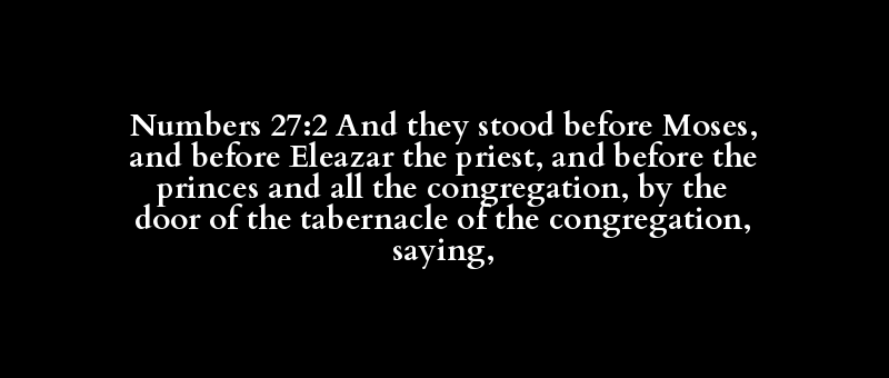 Numbers 27:2 And they stood before Moses, and before Eleazar the priest, and before the princes and all the congregation, by the door of the tabernacle of the congregation, saying,