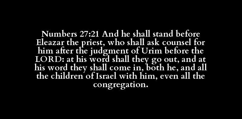 Numbers 27:21 And he shall stand before Eleazar the priest, who shall ask counsel for him after the judgment of Urim before the LORD: at his word shall they go out, and at his word they shall come in, both he, and all the children of Israel with him, even all the congregation.