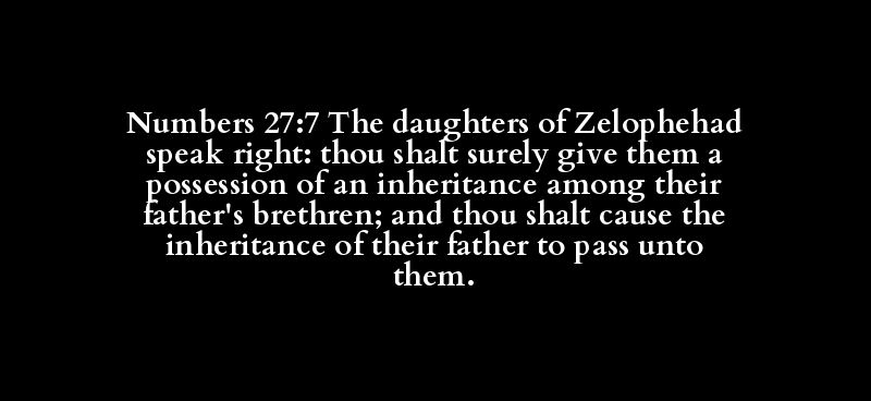 Numbers 27:7 The daughters of Zelophehad speak right: thou shalt surely give them a possession of an inheritance among their father's brethren; and thou shalt cause the inheritance of their father to pass unto them.
