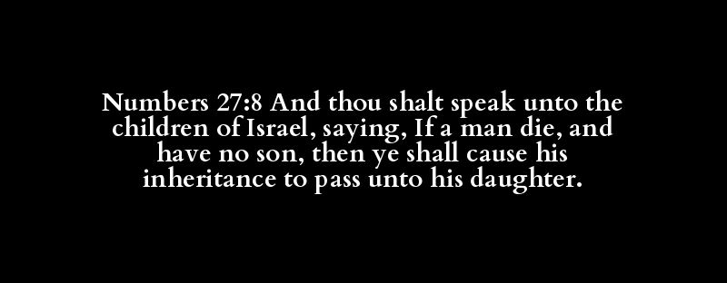 Numbers 27:8 And thou shalt speak unto the children of Israel, saying, If a man die, and have no son, then ye shall cause his inheritance to pass unto his daughter.