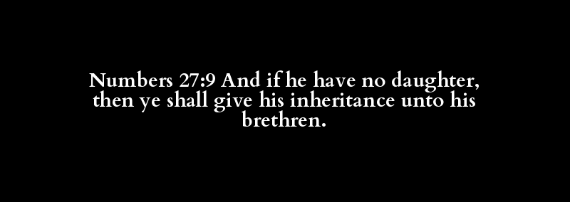 Numbers 27:9 And if he have no daughter, then ye shall give his inheritance unto his brethren.