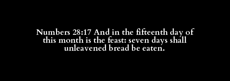 Numbers 28:17 And in the fifteenth day of this month is the feast: seven days shall unleavened bread be eaten.