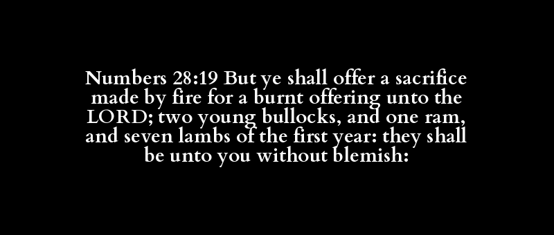 Numbers 28:19 But ye shall offer a sacrifice made by fire for a burnt offering unto the LORD; two young bullocks, and one ram, and seven lambs of the first year: they shall be unto you without blemish: