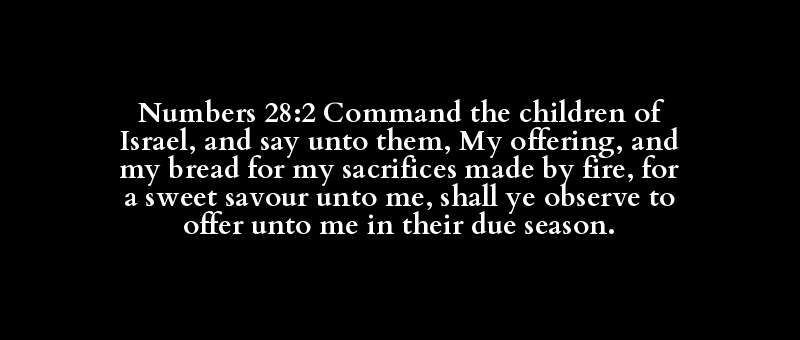Numbers 28:2 Command the children of Israel, and say unto them, My offering, and my bread for my sacrifices made by fire, for a sweet savour unto me, shall ye observe to offer unto me in their due season.