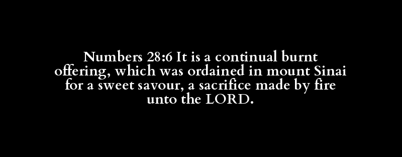 Numbers 28:6 It is a continual burnt offering, which was ordained in mount Sinai for a sweet savour, a sacrifice made by fire unto the LORD.