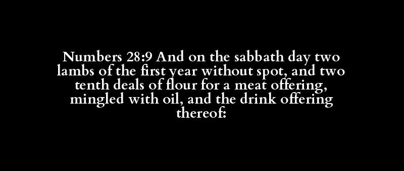 Numbers 28:9 And on the sabbath day two lambs of the first year without spot, and two tenth deals of flour for a meat offering, mingled with oil, and the drink offering thereof: