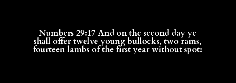 Numbers 29:17 And on the second day ye shall offer twelve young bullocks, two rams, fourteen lambs of the first year without spot: