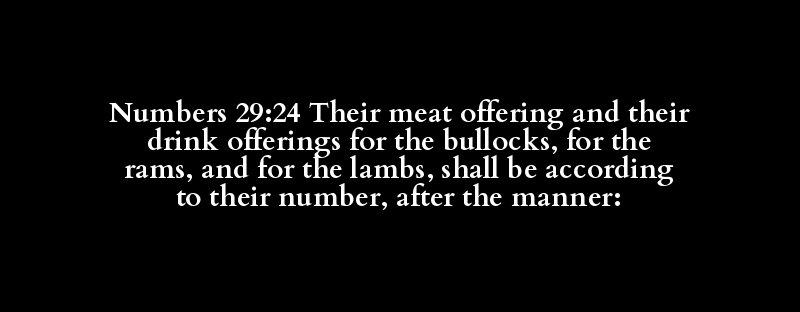 Numbers 29:24 Their meat offering and their drink offerings for the bullocks, for the rams, and for the lambs, shall be according to their number, after the manner: