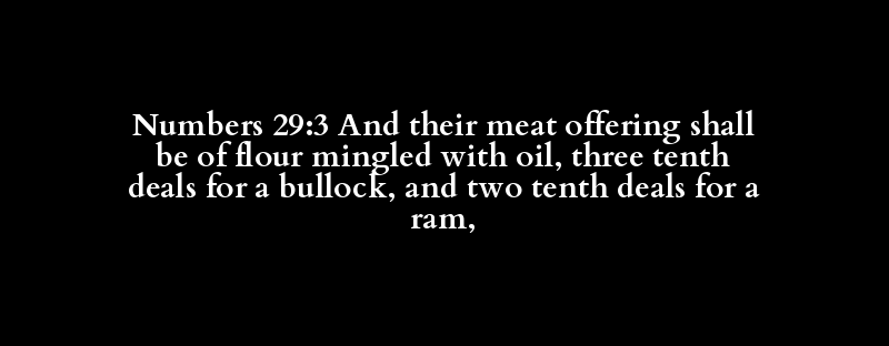 Numbers 29:3 And their meat offering shall be of flour mingled with oil, three tenth deals for a bullock, and two tenth deals for a ram,