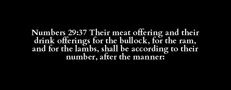 Numbers 29:37 Their meat offering and their drink offerings for the bullock, for the ram, and for the lambs, shall be according to their number, after the manner: