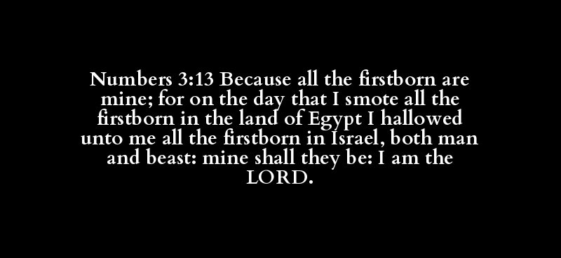 Numbers 3:13 Because all the firstborn are mine; for on the day that I smote all the firstborn in the land of Egypt I hallowed unto me all the firstborn in Israel, both man and beast: mine shall they be: I am the LORD.
