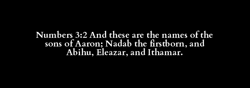 Numbers 3:2 And these are the names of the sons of Aaron; Nadab the firstborn, and Abihu, Eleazar, and Ithamar.
