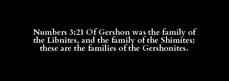 Numbers 3:21 Of Gershon was the family of the Libnites, and the family of the Shimites: these are the families of the Gershonites.