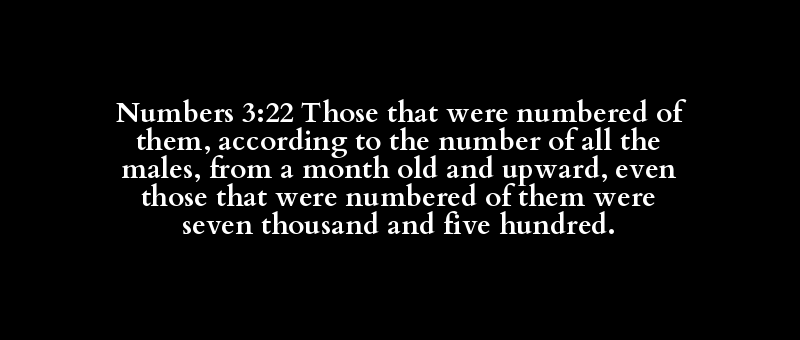 Numbers 3:22 Those that were numbered of them, according to the number of all the males, from a month old and upward, even those that were numbered of them were seven thousand and five hundred.
