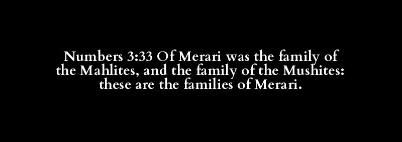 Numbers 3:33 Of Merari was the family of the Mahlites, and the family of the Mushites: these are the families of Merari.