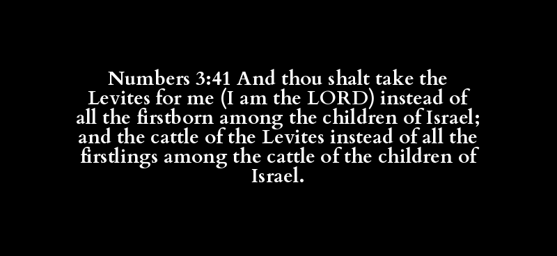 Numbers 3:41 And thou shalt take the Levites for me (I am the LORD) instead of all the firstborn among the children of Israel; and the cattle of the Levites instead of all the firstlings among the cattle of the children of Israel.