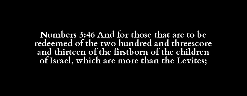 Numbers 3:46 And for those that are to be redeemed of the two hundred and threescore and thirteen of the firstborn of the children of Israel, which are more than the Levites;
