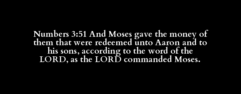 Numbers 3:51 And Moses gave the money of them that were redeemed unto Aaron and to his sons, according to the word of the LORD, as the LORD commanded Moses.