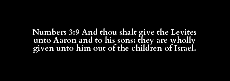 Numbers 3:9 And thou shalt give the Levites unto Aaron and to his sons: they are wholly given unto him out of the children of Israel.