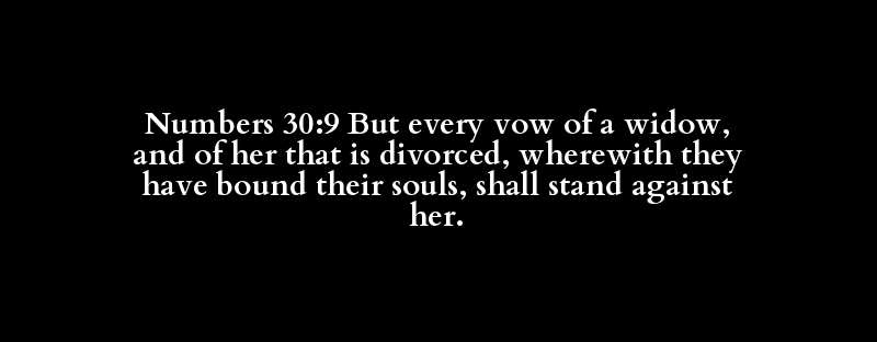 Numbers 30:9 But every vow of a widow, and of her that is divorced, wherewith they have bound their souls, shall stand against her.