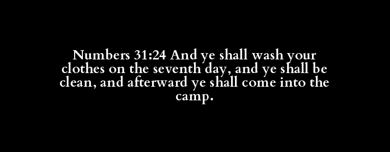Numbers 31:24 And ye shall wash your clothes on the seventh day, and ye shall be clean, and afterward ye shall come into the camp.