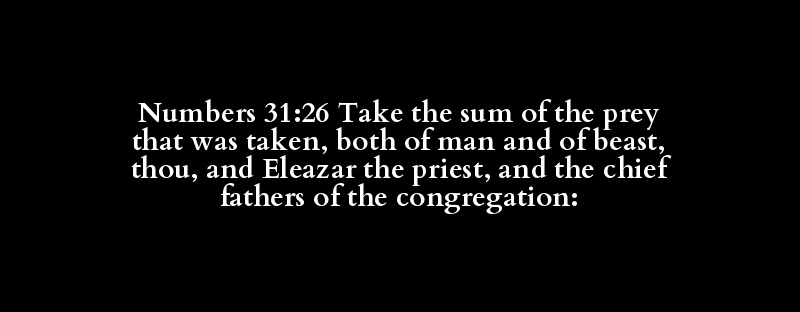 Numbers 31:26 Take the sum of the prey that was taken, both of man and of beast, thou, and Eleazar the priest, and the chief fathers of the congregation: