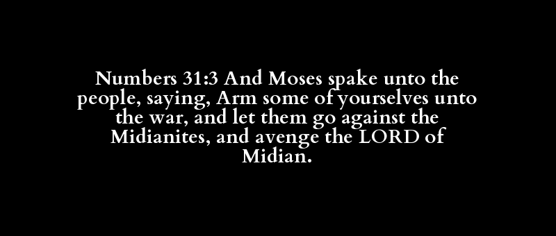 Numbers 31:3 And Moses spake unto the people, saying, Arm some of yourselves unto the war, and let them go against the Midianites, and avenge the LORD of Midian.
