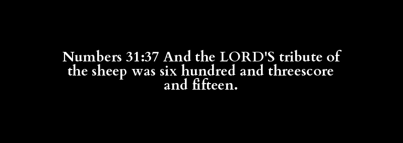 Numbers 31:37 And the LORD'S tribute of the sheep was six hundred and threescore and fifteen.