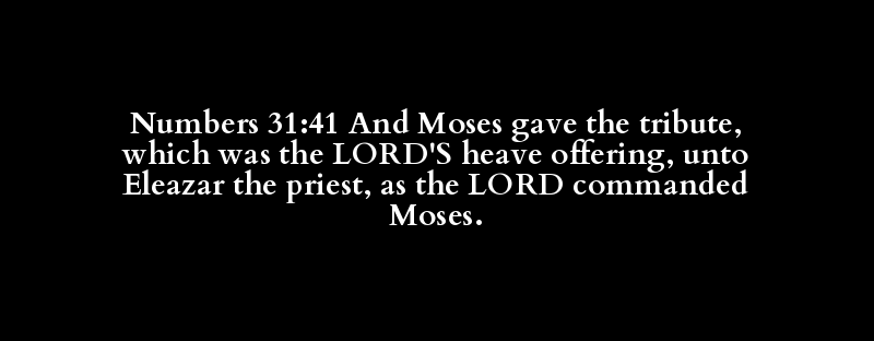 Numbers 31:41 And Moses gave the tribute, which was the LORD'S heave offering, unto Eleazar the priest, as the LORD commanded Moses.