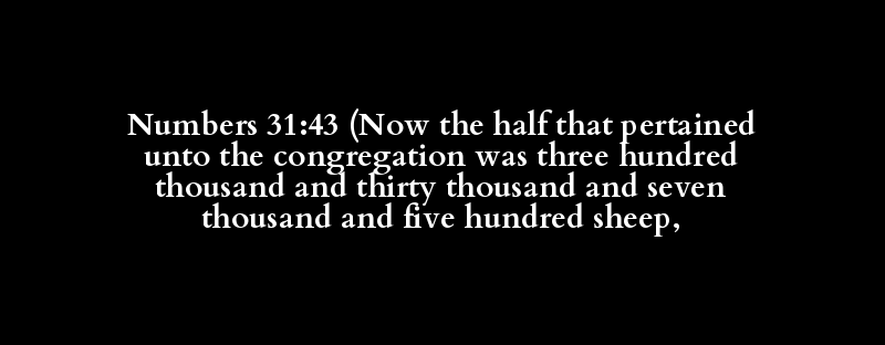 Numbers 31:43 (Now the half that pertained unto the congregation was three hundred thousand and thirty thousand and seven thousand and five hundred sheep,
