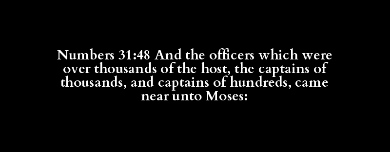 Numbers 31:48 And the officers which were over thousands of the host, the captains of thousands, and captains of hundreds, came near unto Moses: