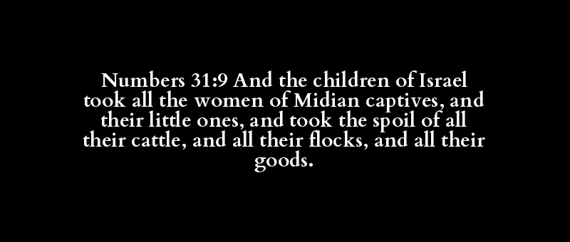 Numbers 31:9 And the children of Israel took all the women of Midian captives, and their little ones, and took the spoil of all their cattle, and all their flocks, and all their goods.