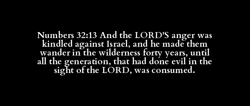 Numbers 32:13 And the LORD'S anger was kindled against Israel, and he made them wander in the wilderness forty years, until all the generation, that had done evil in the sight of the LORD, was consumed.