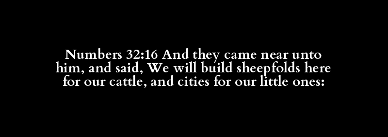 Numbers 32:16 And they came near unto him, and said, We will build sheepfolds here for our cattle, and cities for our little ones: