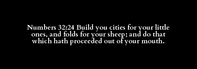 Numbers 32:24 Build you cities for your little ones, and folds for your sheep; and do that which hath proceeded out of your mouth.