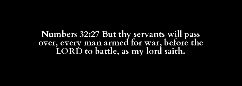 Numbers 32:27 But thy servants will pass over, every man armed for war, before the LORD to battle, as my lord saith.