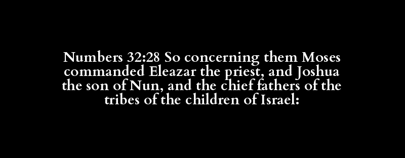 Numbers 32:28 So concerning them Moses commanded Eleazar the priest, and Joshua the son of Nun, and the chief fathers of the tribes of the children of Israel: