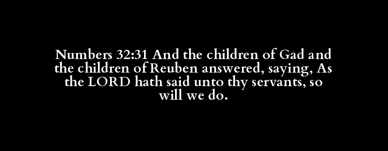 Numbers 32:31 And the children of Gad and the children of Reuben answered, saying, As the LORD hath said unto thy servants, so will we do.