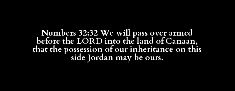 Numbers 32:32 We will pass over armed before the LORD into the land of Canaan, that the possession of our inheritance on this side Jordan may be ours.