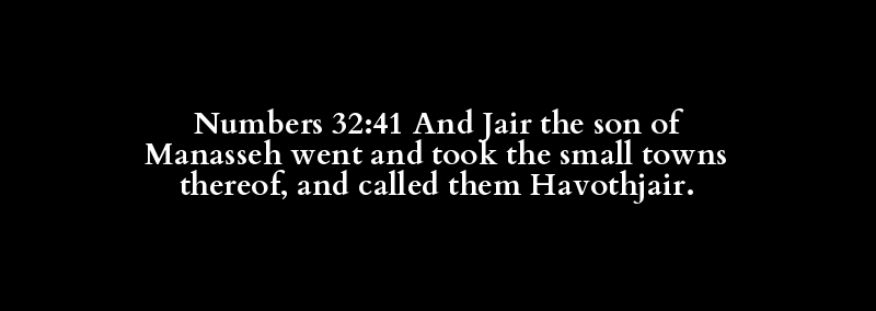 Numbers 32:41 And Jair the son of Manasseh went and took the small towns thereof, and called them Havothjair.